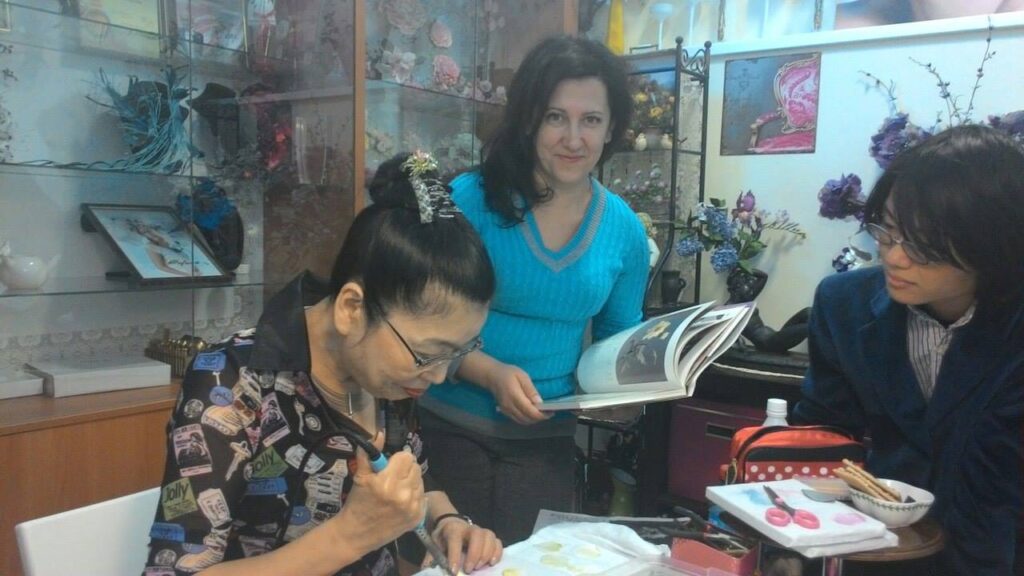 Наслідуючи мрію, пройшла навчання унікальному японському мистецтву Сомебана у легендарного вчителя Сайоко Ясуда.