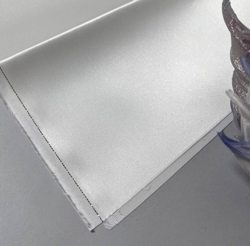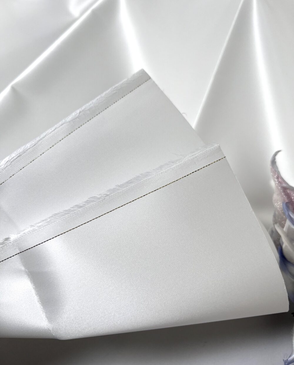 Віскозний сатин із фабричним просоченням – тобто, не потребує додаткової обробки для надання їй жорсткості.