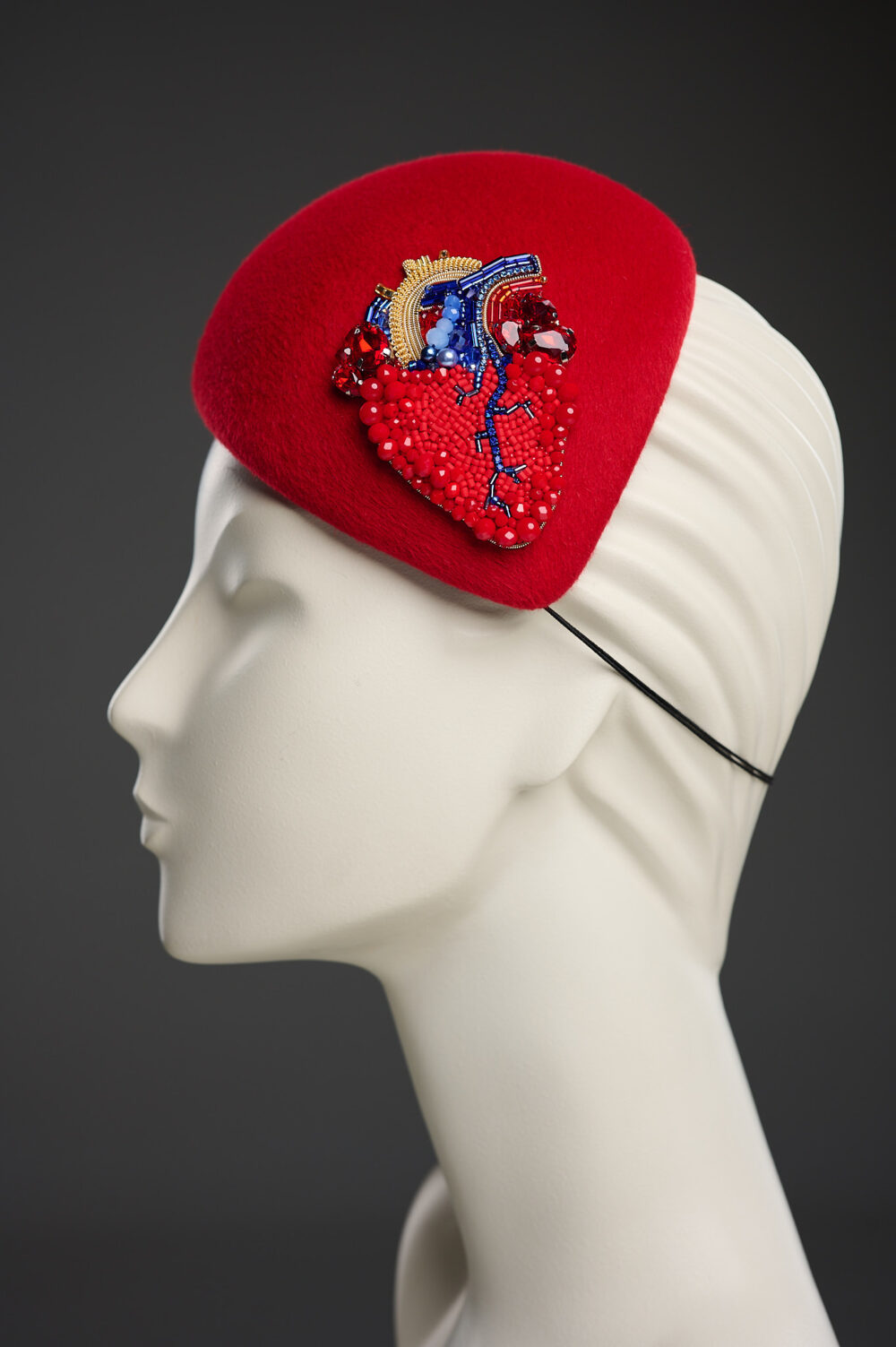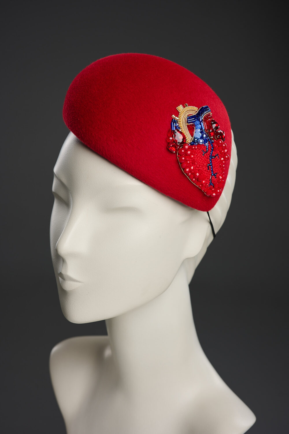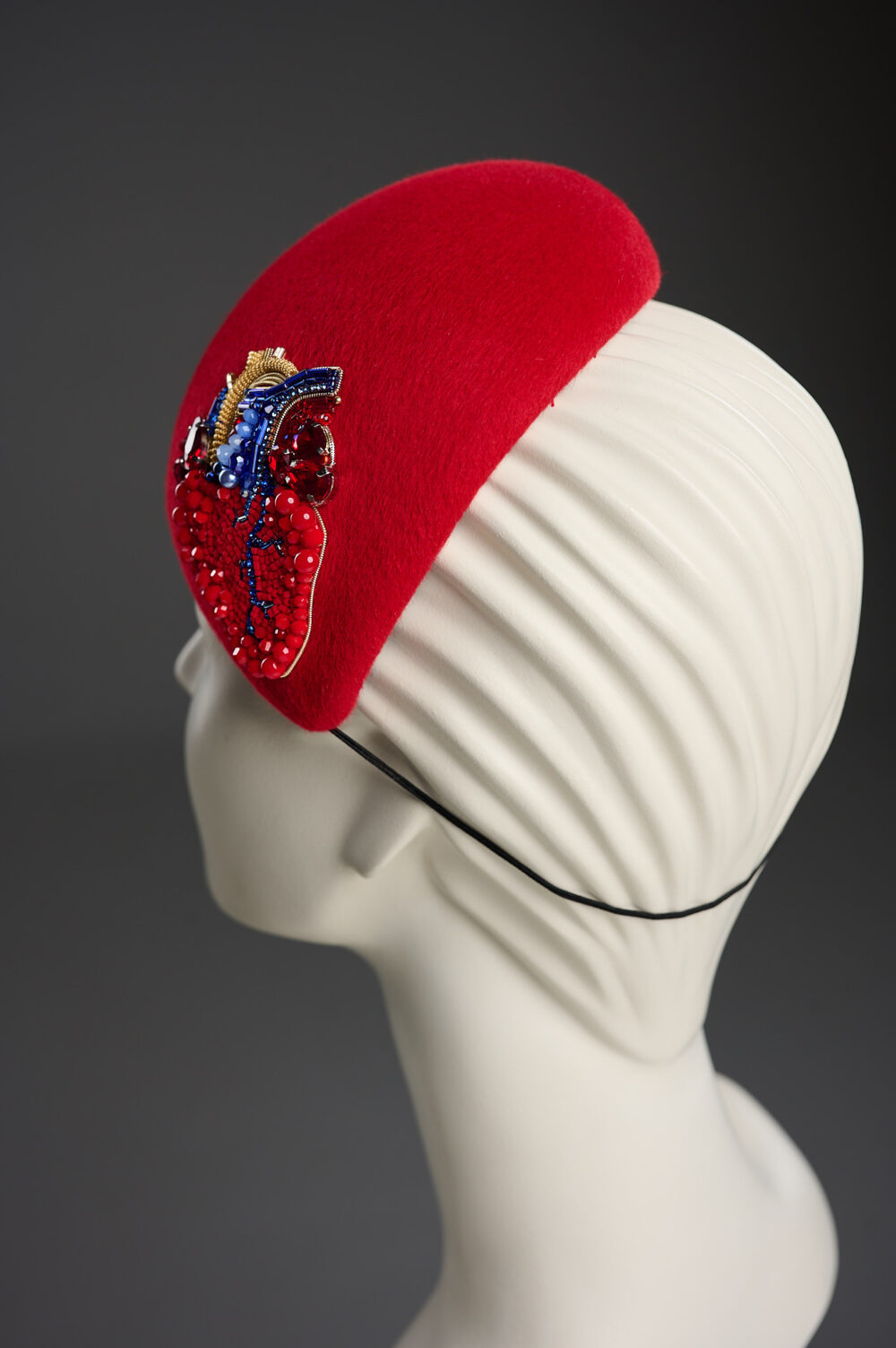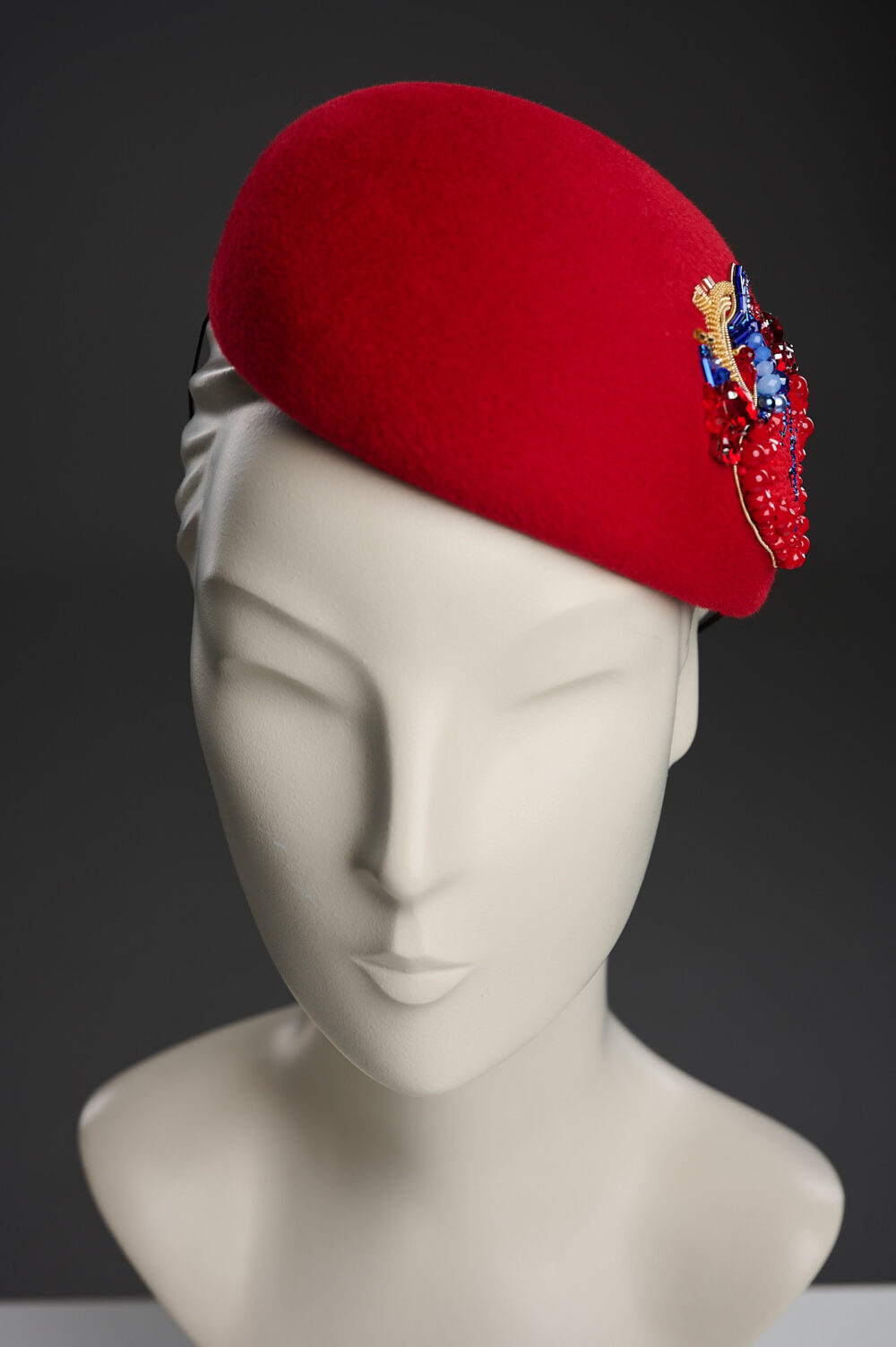 Коктейльний капелюшок благородного червоного кольору, оздоблений вишивкою від кутюр. Він виглядає богемно та яскраво, і стане стильним доповненням до вашого вечірнього вбрання. В цьому капелюшку ви будете найяскравішою та найефектнішою зіркою на будь-якому заході!