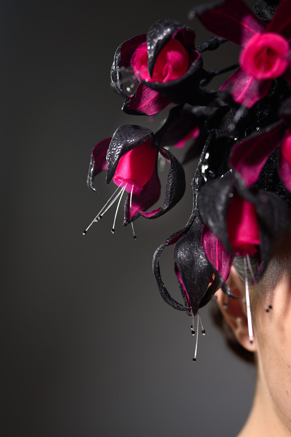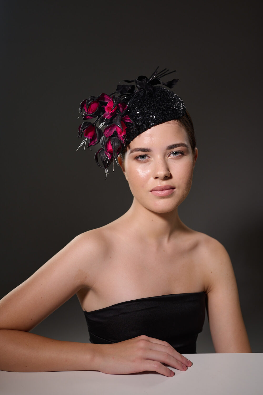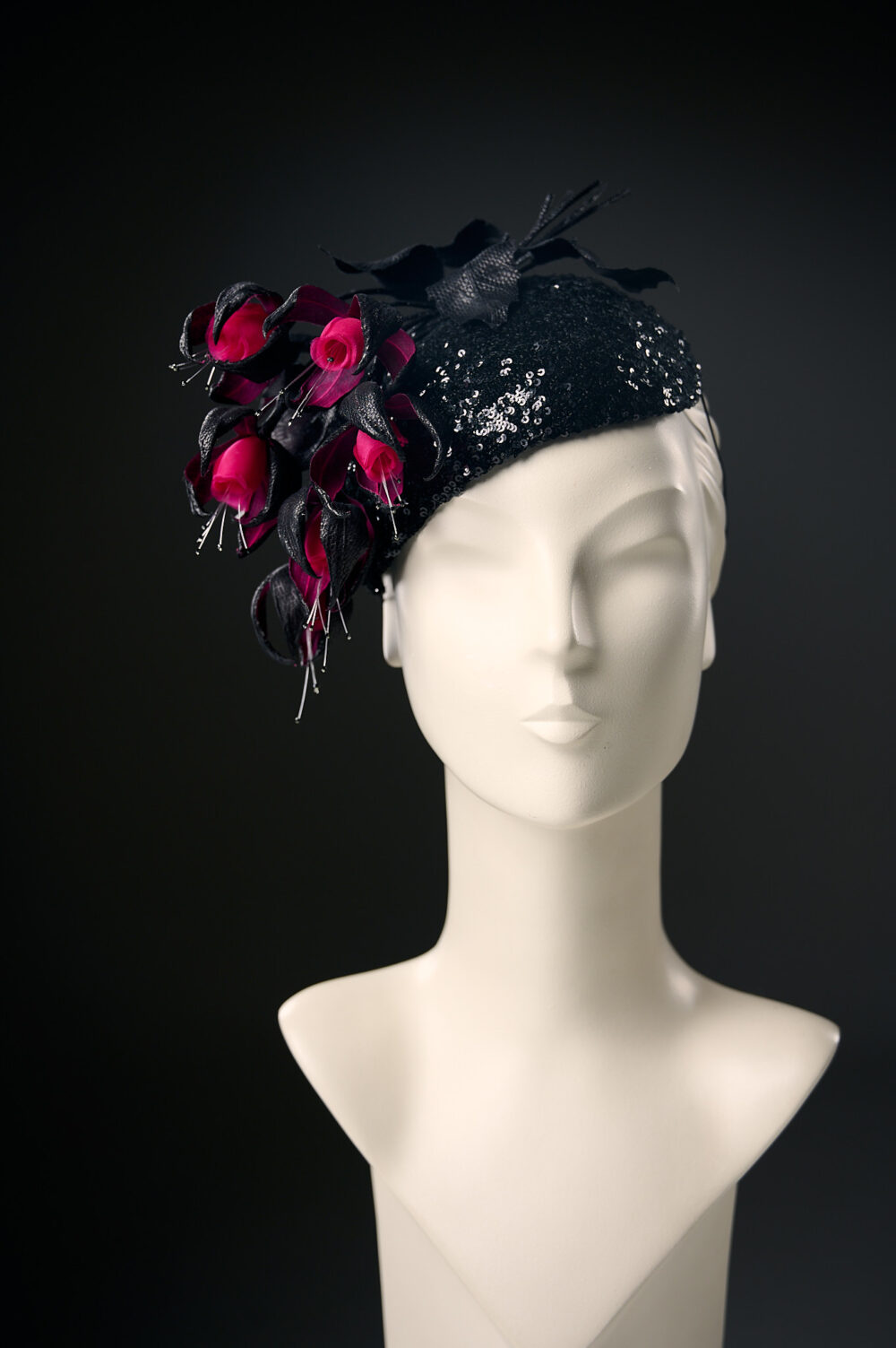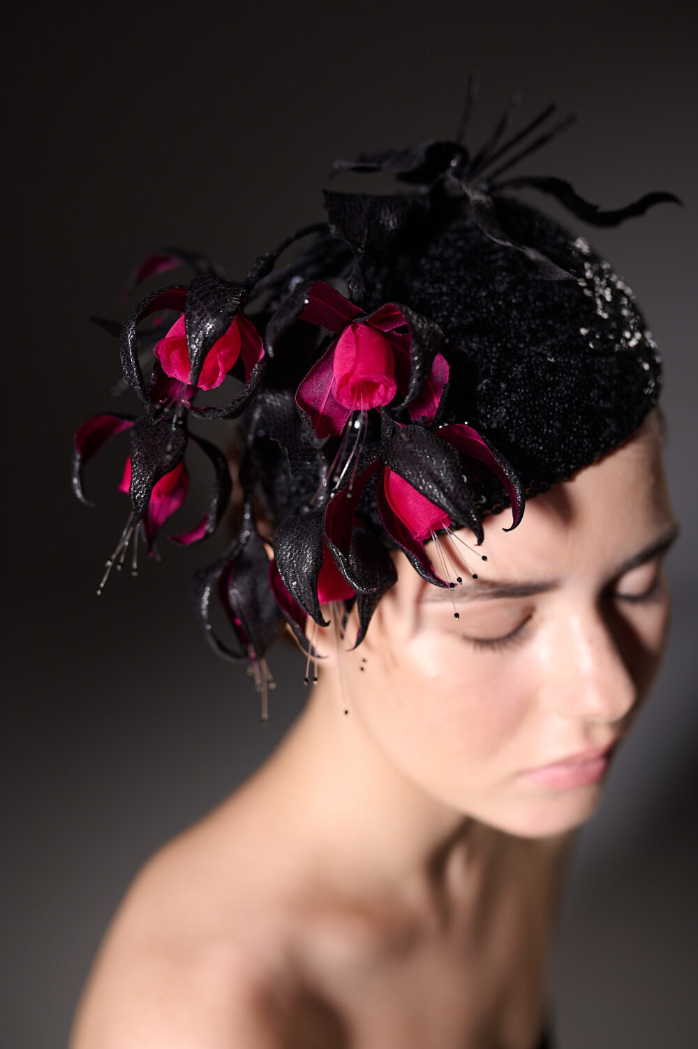 Капелюшок-фасцинатор ручної роботи з шовковими квітами кольору фуксії – це чудова ідея для вашого яскравого виходу на особливих заходах!