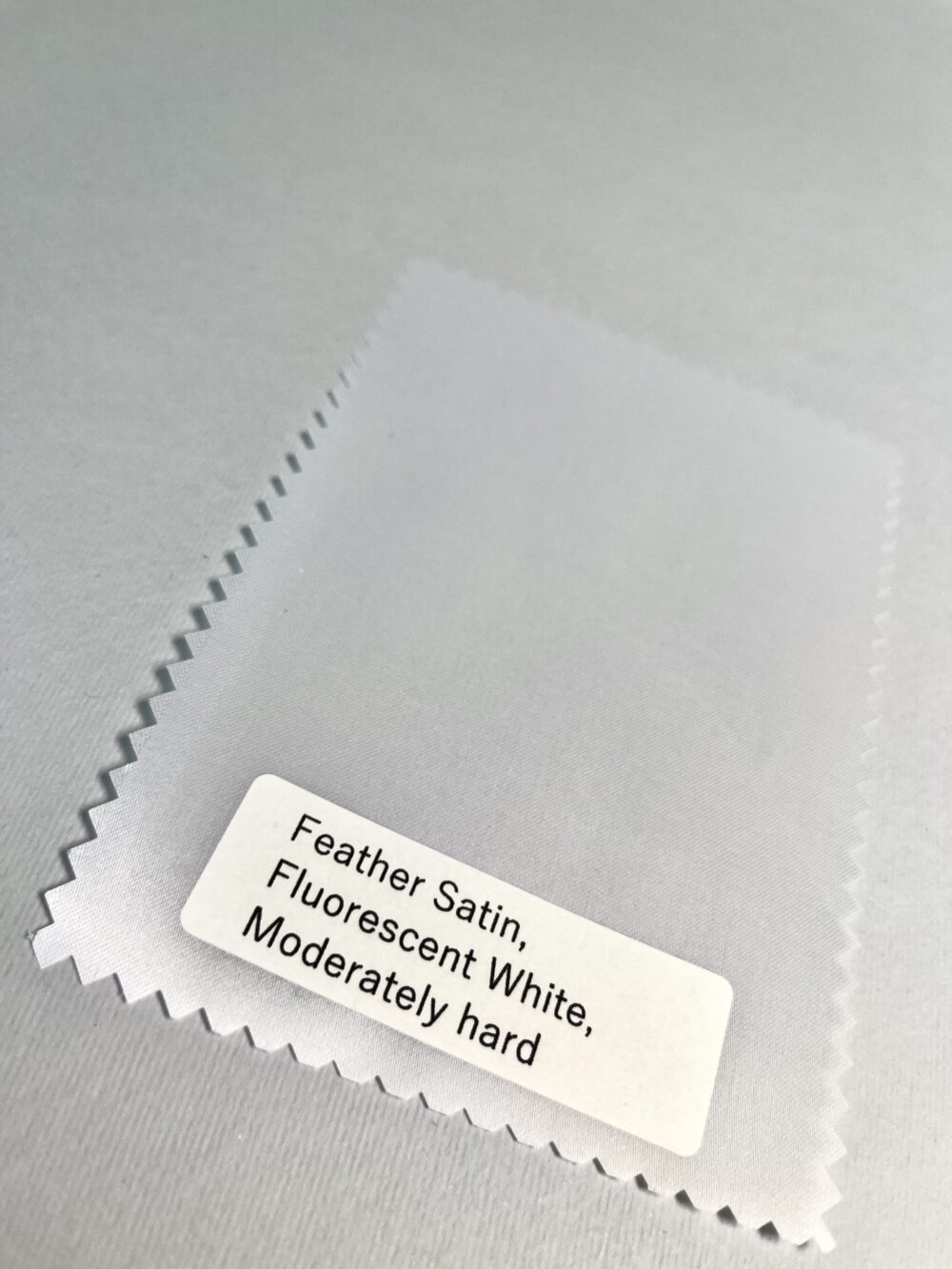 Сатин має середню ступінь фабричного просочення, він пластичний, щільний, має помірний характерний сатиновим тканинам  делікатний блиск.