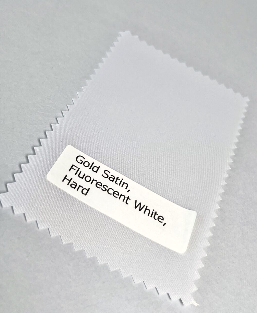 Тканина тверда, пластична, щільна, має делікатний, помірний сатиновий блиск. Різниця від тканини “Gold New Satin Hard” полягає в ледь помітній щільності, у тканині “Gold Satin Hard” вона більша.