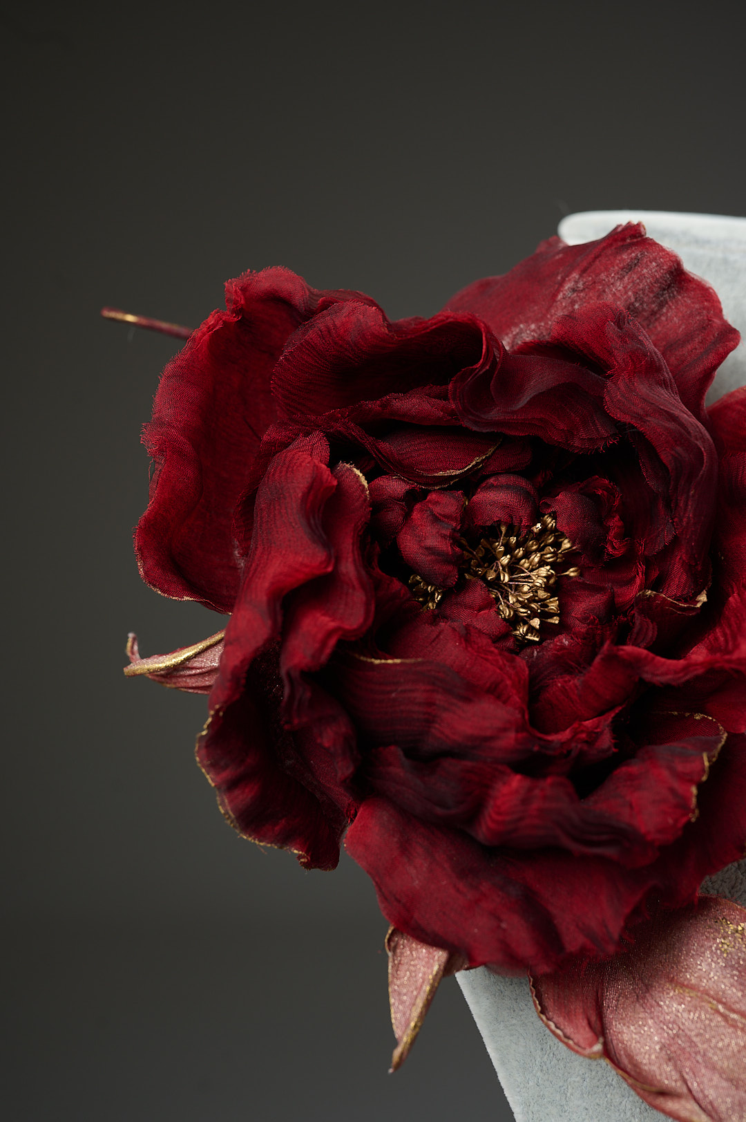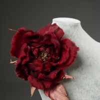 Брошка роза “Бордо” из натурального шелка