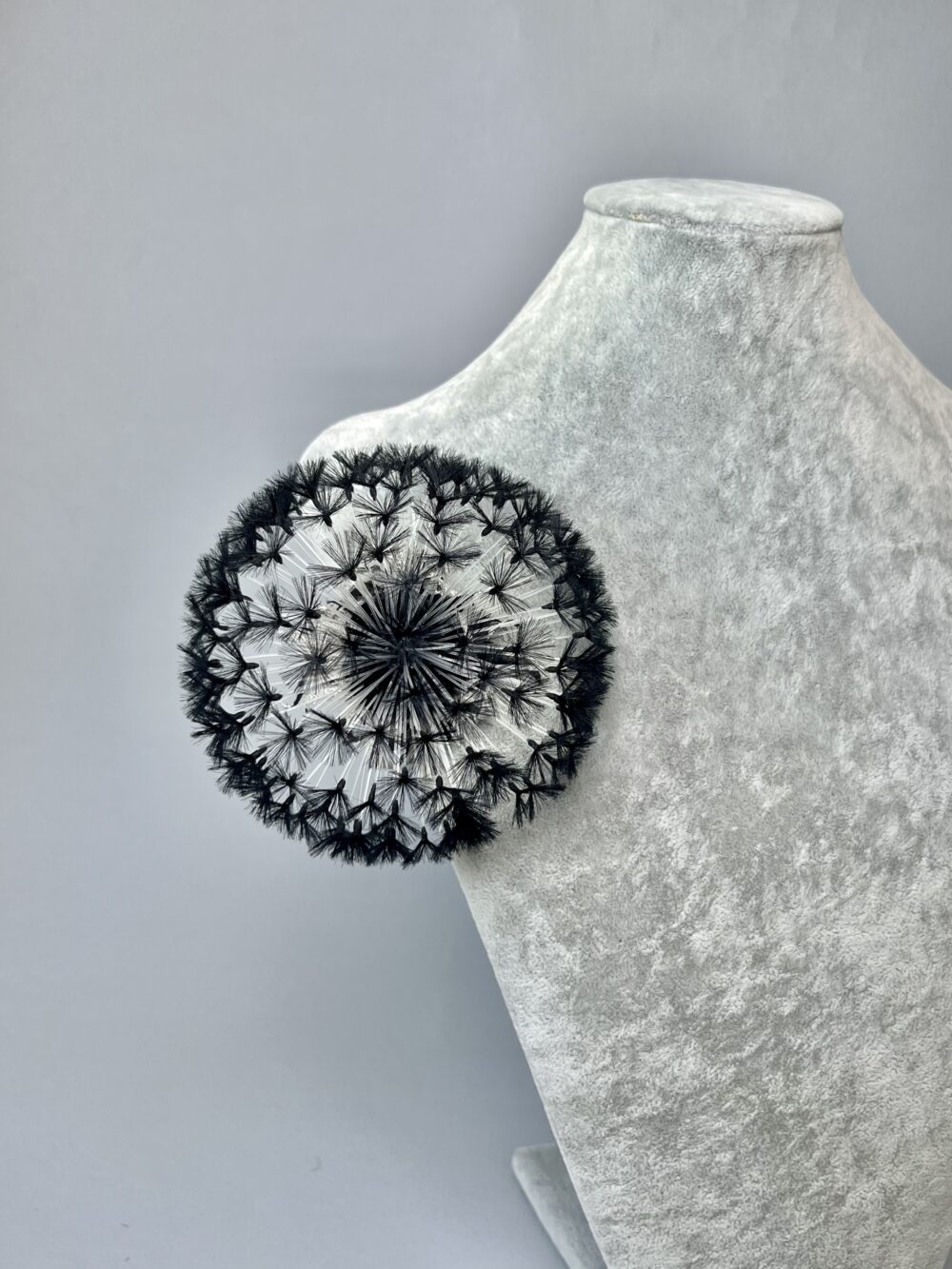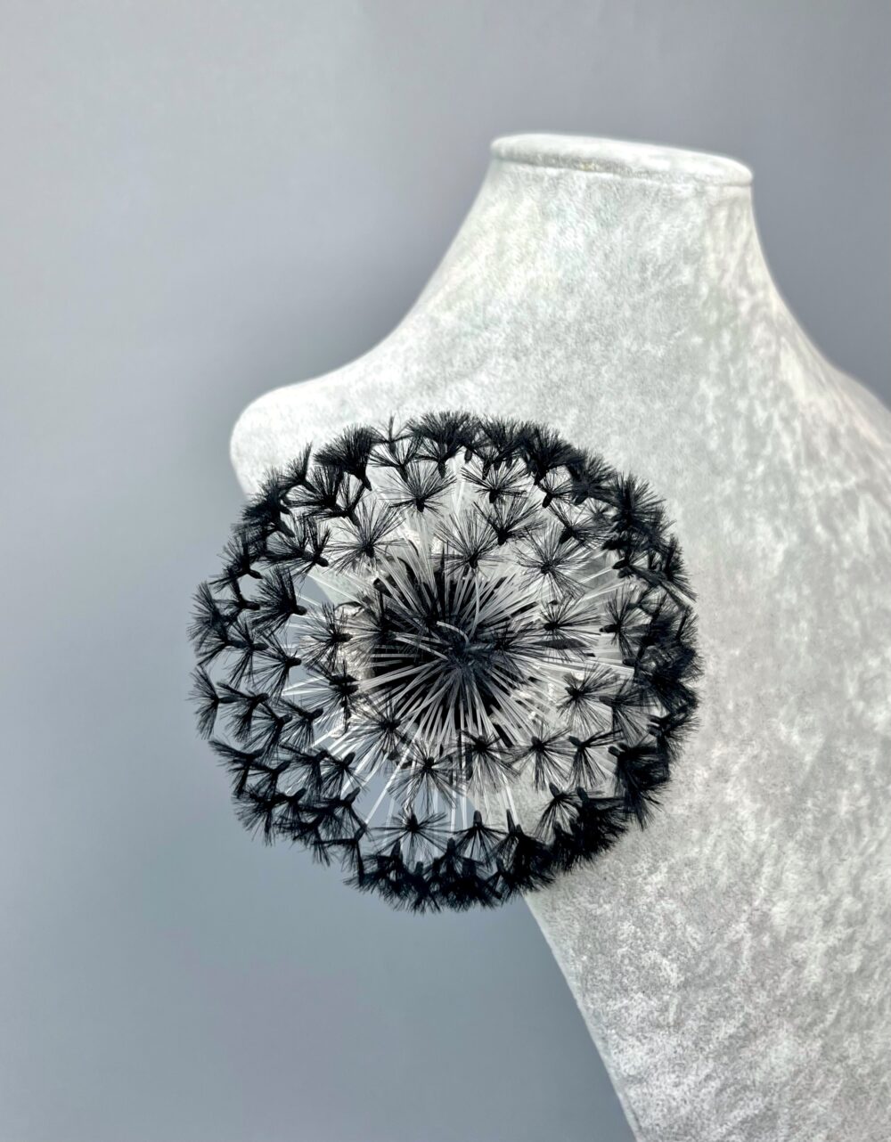 Стильное, уникальное украшение – брошь черный одуванчик.