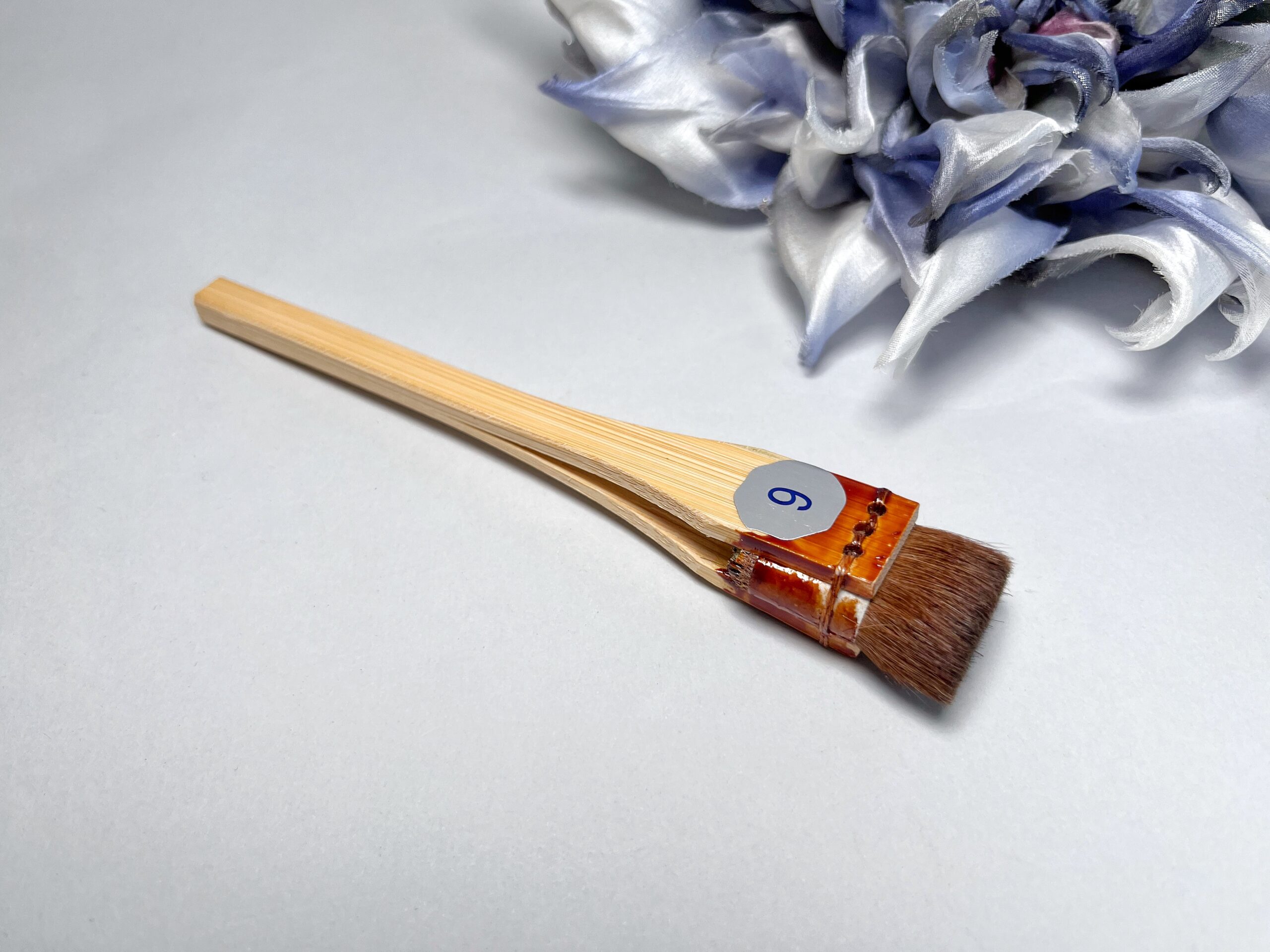 Упругая квадратная кисть высокого качества. Этот тип японской кисти хорошо себя зарекомендовал в работах с тканями , шёлком , бумагой .
