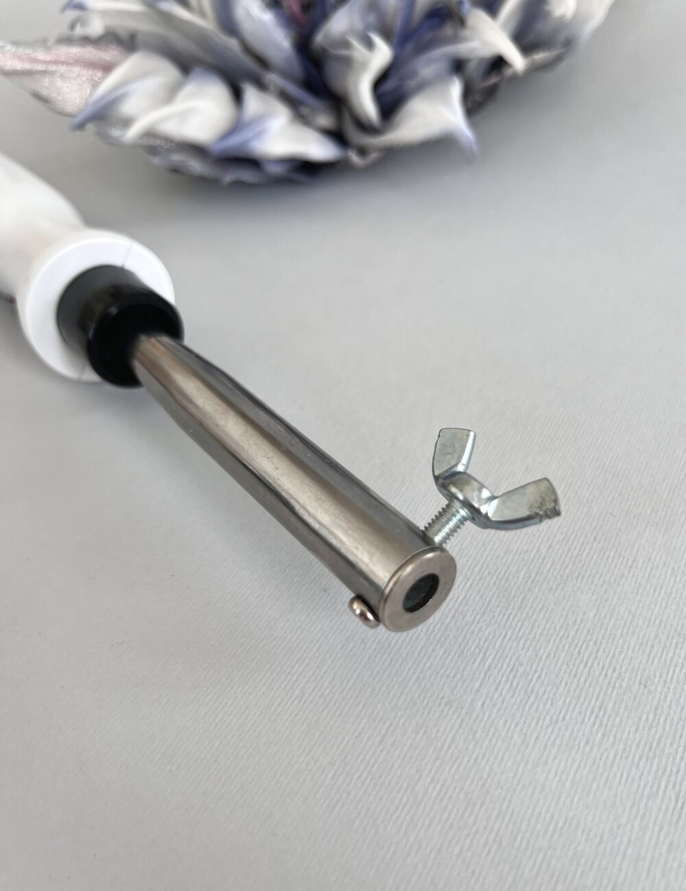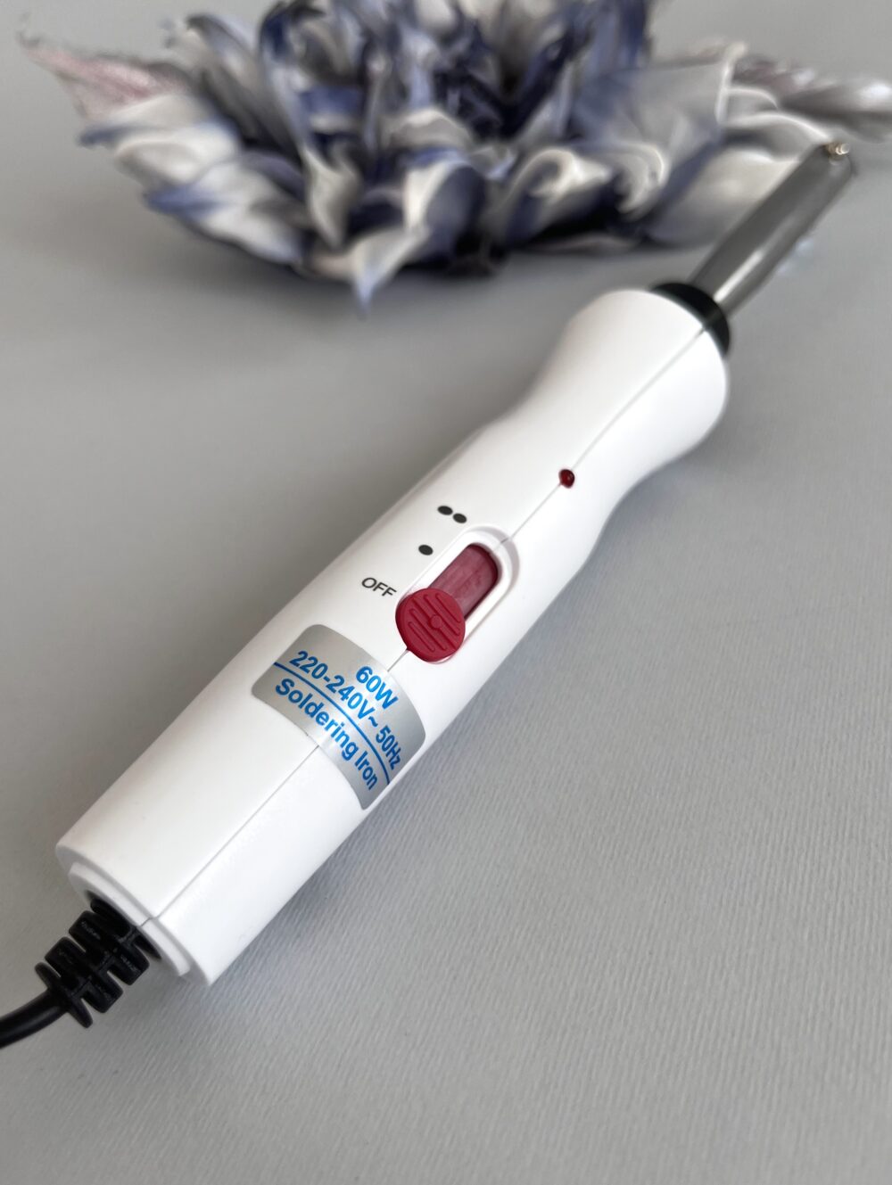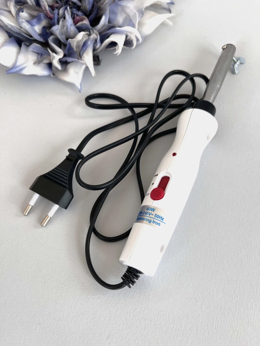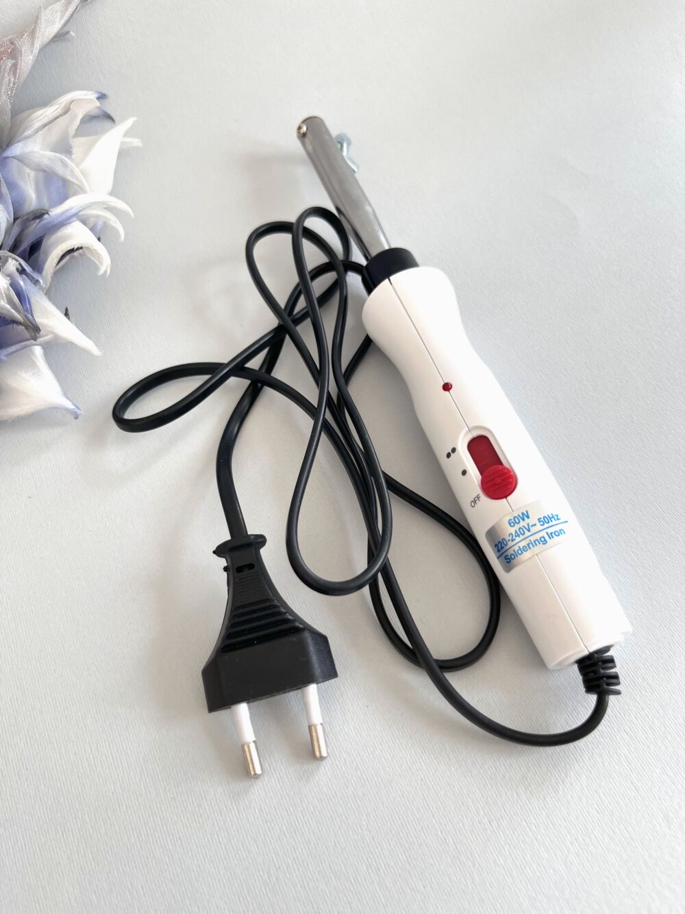 Паяльник к насадкам-инструментам для изготовления цветов, и декоративных элементов из шелка, ткани, бумаги, кожи и тому подобное.