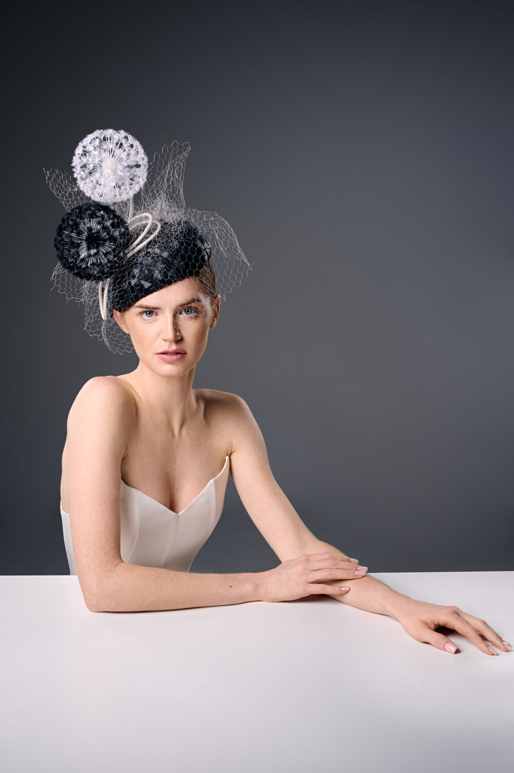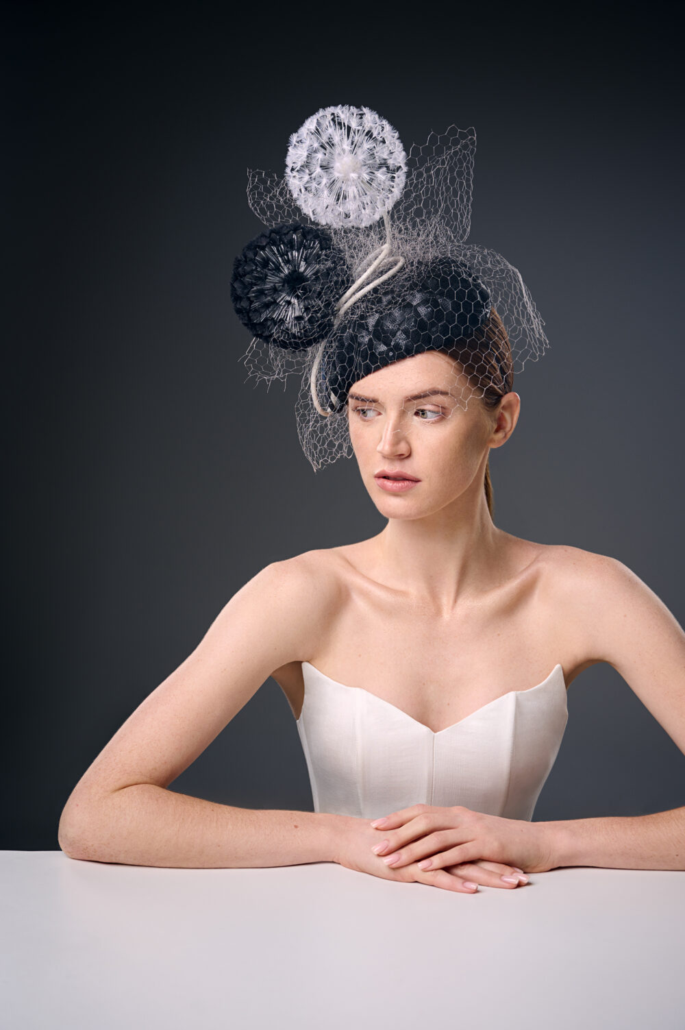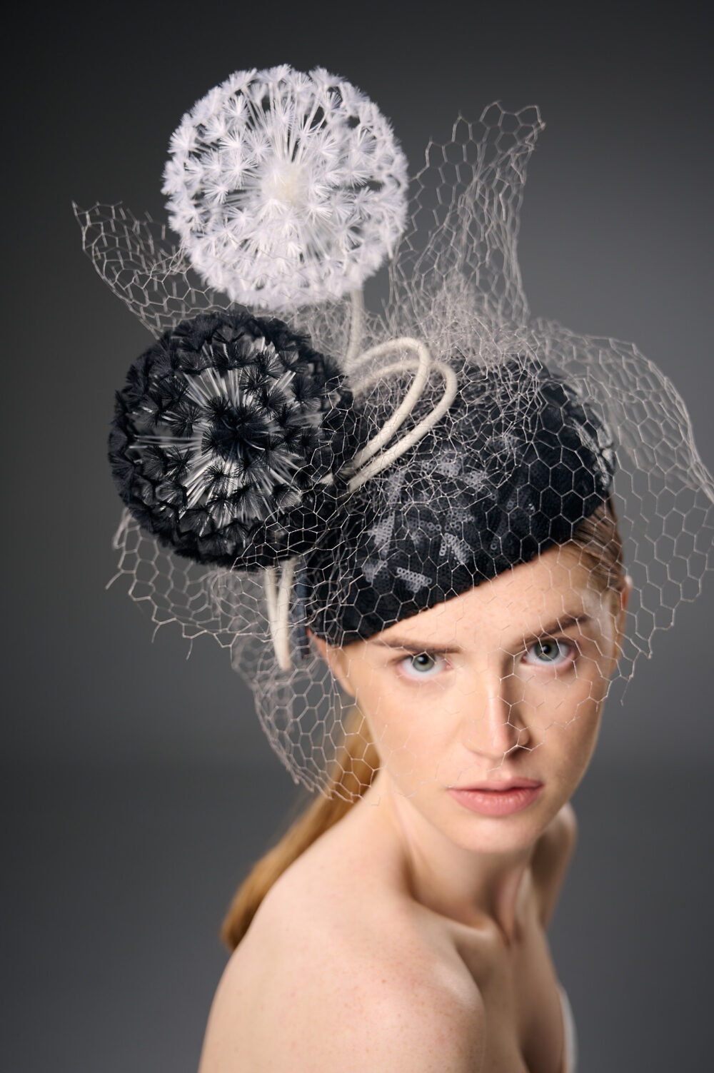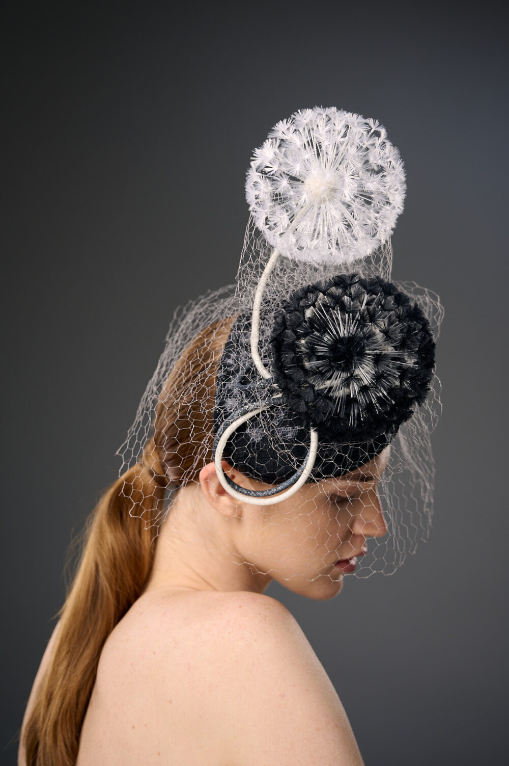 Каждый сегмент на одуванчиках создан вручную из японского шелка. Красивая винтажная шелковая вуаль и фактурная итальянская ткань с пайетками сделали шляпу невероятно стильной. Внутри изделия шелковая подкладка. Крепится на резиновую веревочку и гребешок.